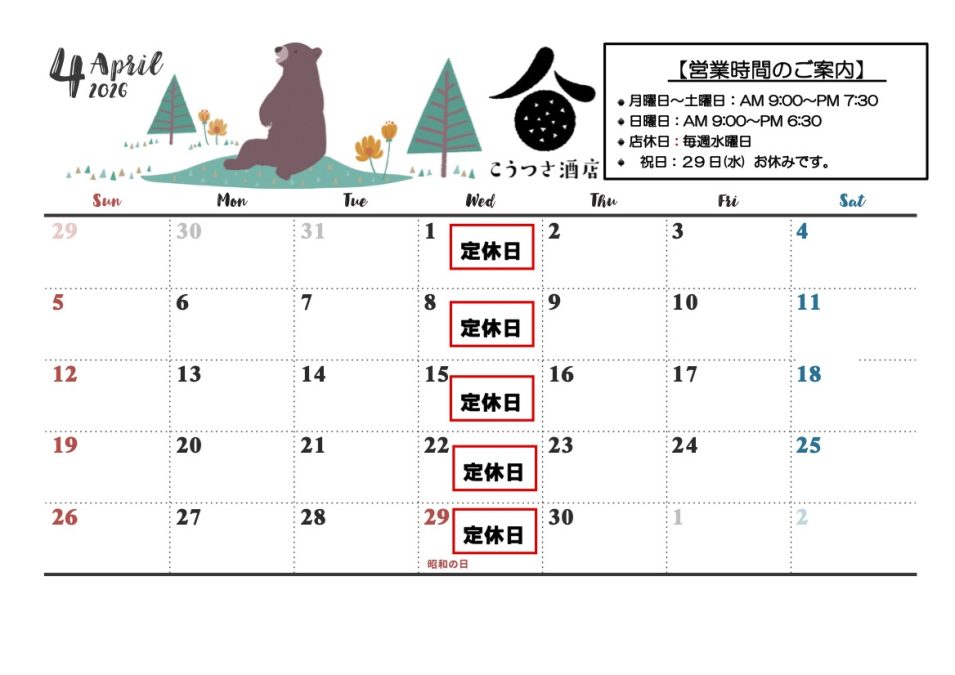 4月【営業カレンダー】