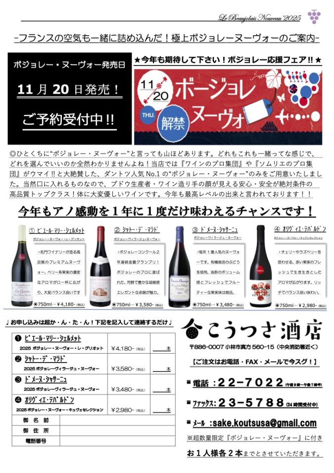 今年も極上のヌーヴォーをご用意いたしました♪( ´▽`)