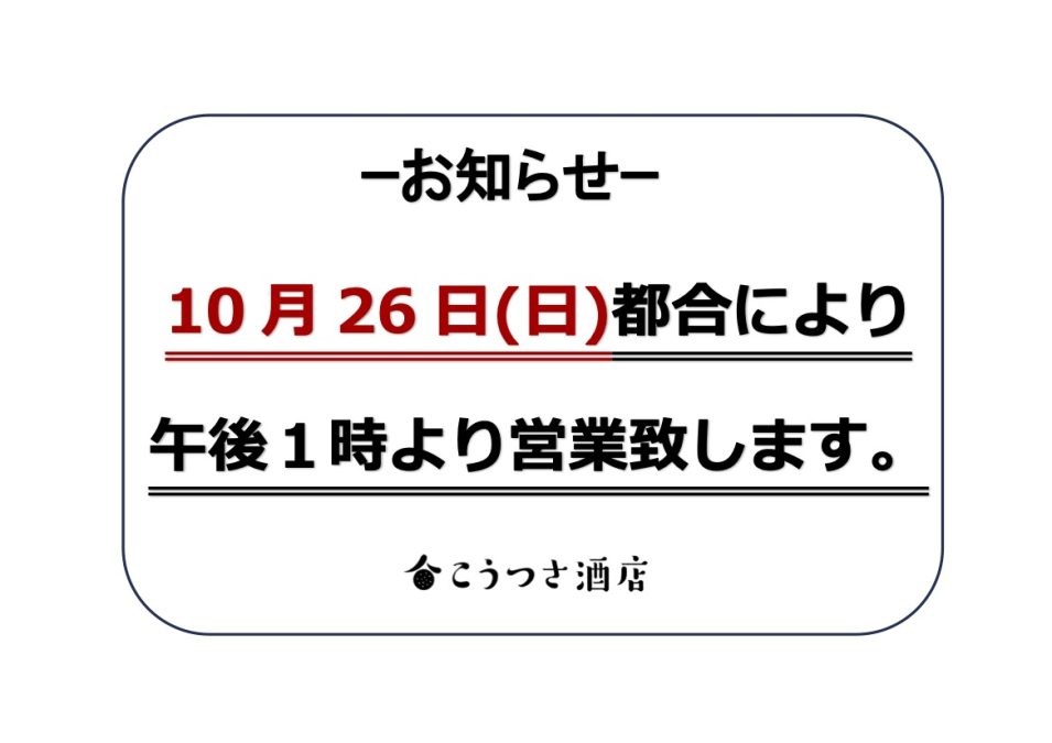 10月26日(日)【午後より営業】です。